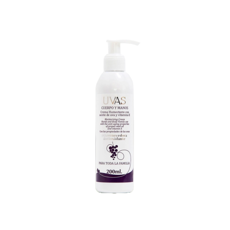 Crema Humectante con Aceite de Uva y Vitamina E. Con las propiedades de las Uvas. Rejuvenecedora y antioxidante. Para toda la Familia.