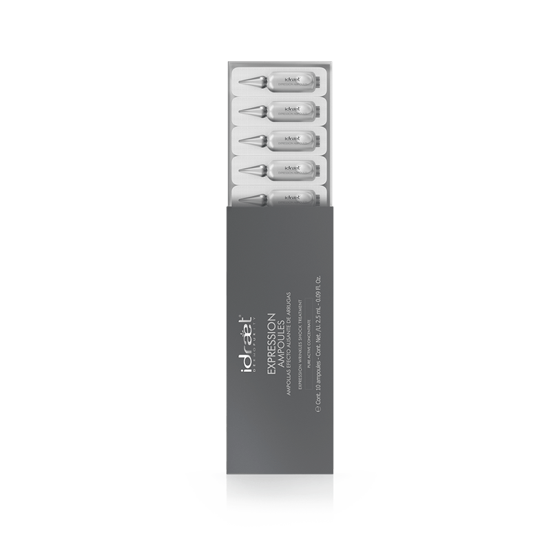 Ampolla ultraconcentrada con efecto “botox like”. Tratamiento shock que minimiza las arrugas de expresión. Efecto alisante de arrugas que suaviza la mirada.