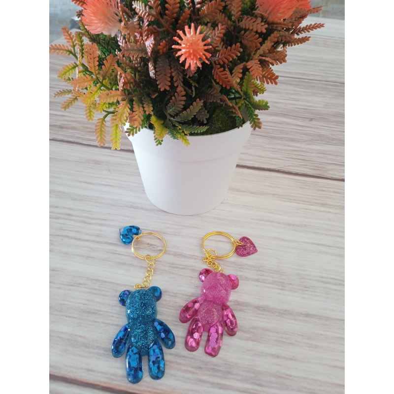 Chapita Rectangular hecho en resina, con aplicación de givre, glitters, flores secas y glitters holográficos.