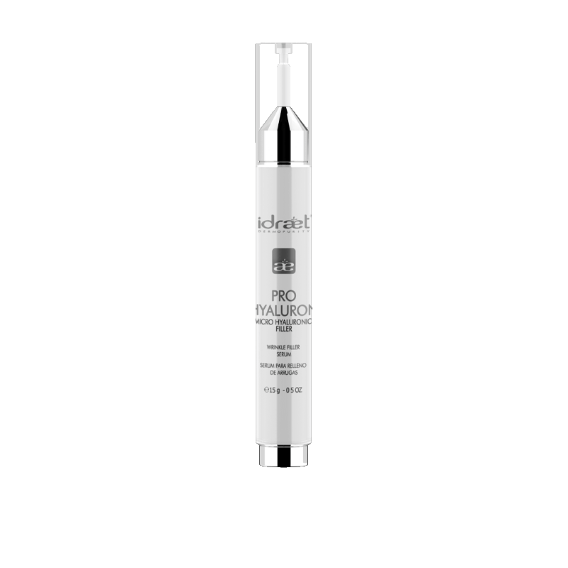 Serum inspirado en las inyecciones de relleno que mediante la penetración transdérmica de Ácido Hialurónico. Elimina arrugas finas y minimiza arrugas profundas en la zona de la frente, contorno de ojos y contorno de labios.