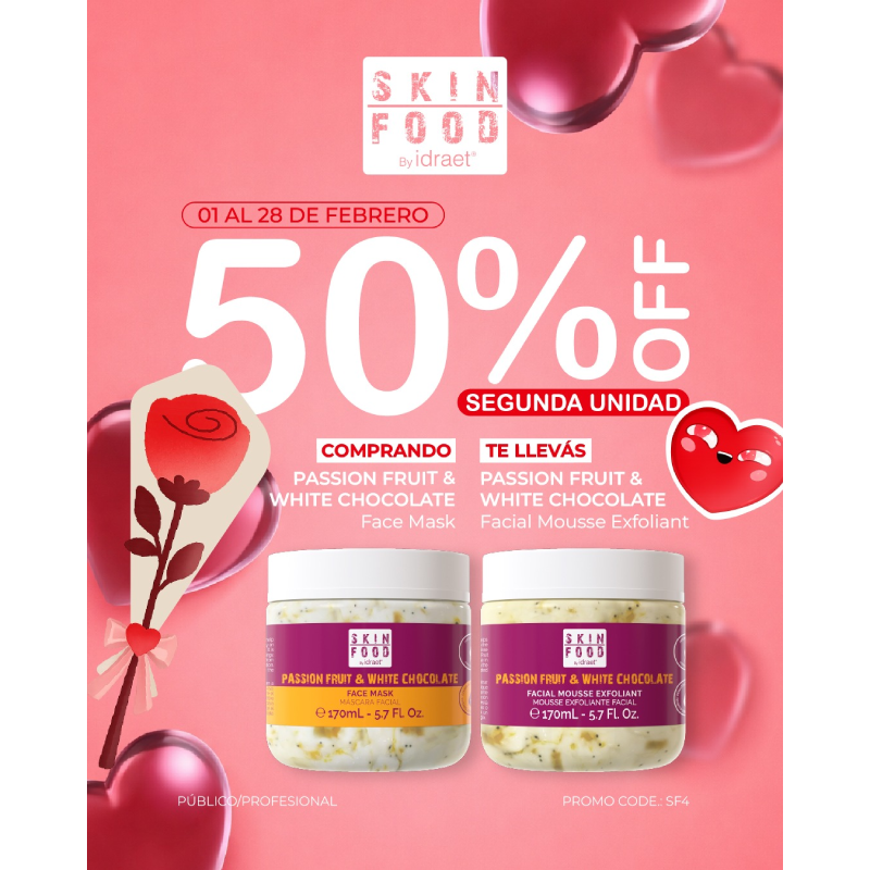 Promo SF4 – PASSION FRUIT & WHITE CHOCOLATE – FACE MASK = PASSION FRUIT & WHITE CHOCOLATE – FACIAL MOUSSE EXFOLIANT